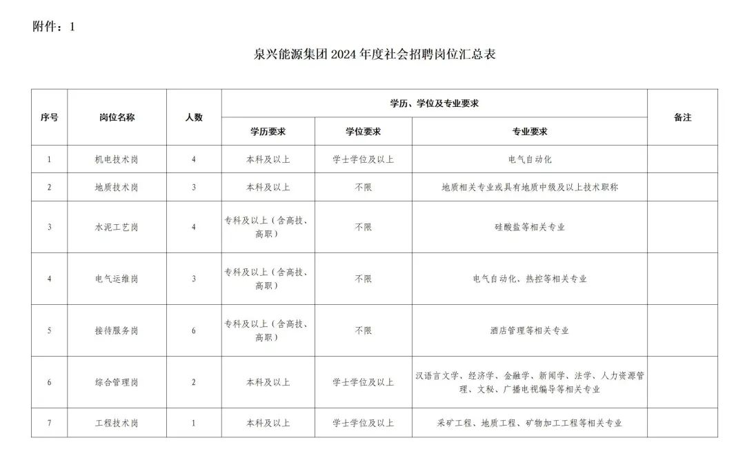 山東泉興能源集團有限公司2024年度公開招聘公告